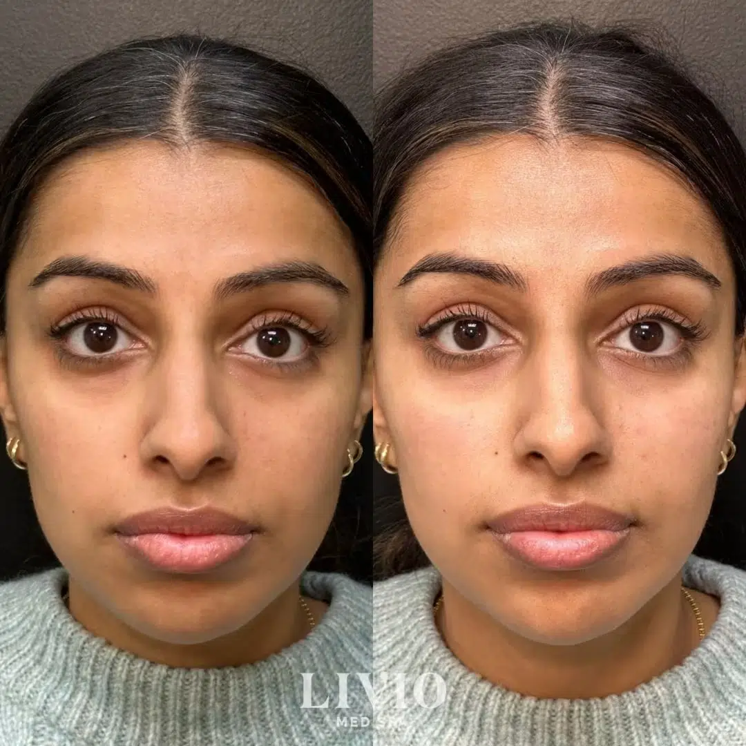 This patient received cheek filler to restore volume and define natural contours, creating a lifted and youthful appearance while addressing mid-face volume loss.